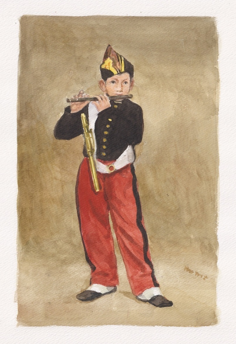 笛を吹く少年(マネ模写)F4 |
